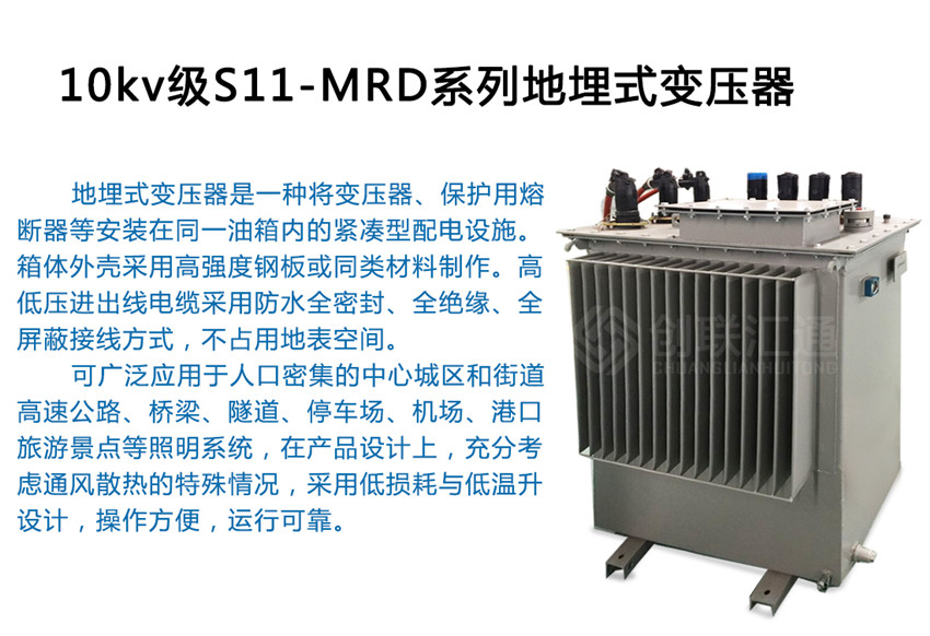S11-MRD地埋式變壓器由于其占地面積小,安裝方便和免維護等特點,大多用在城市公用配電、停車場、高架、機場、港口、隧道、旅游景點等用地緊張的場所,城網(wǎng)配電改造以及對占地面積和高度要求嚴格的場所。